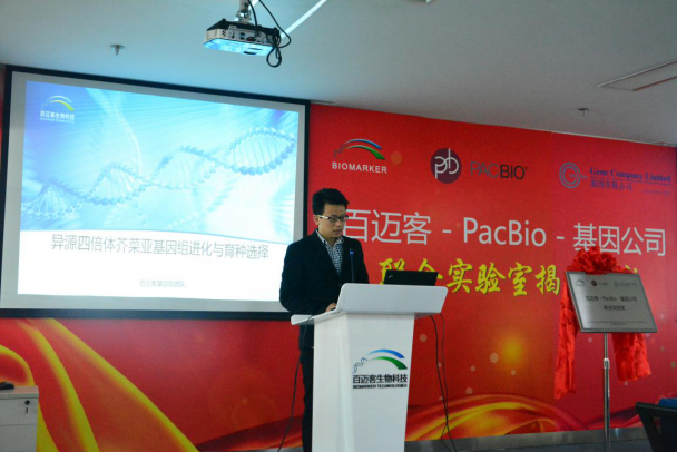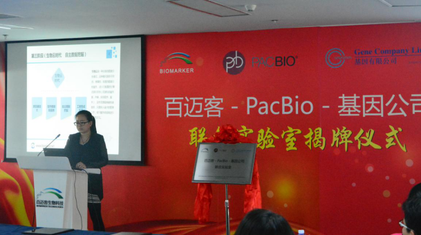 12 月27日,北京百邁客生物科技有限公司與PacBio、基因有限公司舉行了聯(lián)合實(shí)驗(yàn)室揭牌儀式。北京百邁客生物科技有限公司創(chuàng)始人、董事長兼CEO鄭洪坤 先生,PacBio公司 Senior Director of Sales -North Asia(北亞區(qū)高級銷售總監(jiān))牟德宜女士;基因有限公司儀器事業(yè)部總經(jīng)理項(xiàng)連才先生等多位三方代表參加了揭牌儀式。轉(zhuǎn)化醫(yī)學(xué)、生物谷、測序中國作為特邀 媒體參加了本次揭牌儀式。