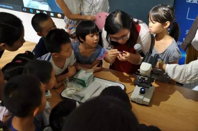 顯微鏡觀察細(xì)胞環(huán)節(jié),孩子們排起了長長的隊(duì)伍,興高采烈地實(shí)際動手操作顯微鏡。想必這些小小的腦袋里會留下這樣的嘆號:“原來還有一個肉眼看不到的世界是這個樣子”。