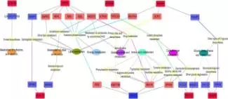 為了研究GPR和HDAC共表達(dá)網(wǎng)絡(luò)的生物學(xué)意義,改研究注釋了相關(guān)的信號(hào)通路和KEGG功能,發(fā)現(xiàn)顯著差異的鄰近基因被分類(lèi)到瘤胃上皮細(xì)胞的生理調(diào)節(jié)過(guò)程,因此發(fā)現(xiàn)了兩類(lèi)和上皮細(xì)胞生長(zhǎng)調(diào)節(jié)有關(guān)系的功能網(wǎng)絡(luò),其中一類(lèi)是上皮細(xì)胞生長(zhǎng)網(wǎng)絡(luò)(包括細(xì)胞凋亡,增殖和分化,見(jiàn)下圖7),另外一類(lèi)是上皮細(xì)胞的代謝網(wǎng)絡(luò)(包括輔酶因子和維生素代謝,能量代謝、氨基酸代謝等,見(jiàn)下圖8);