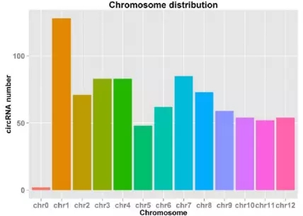 2.染色體來源分析發(fā)現(xiàn),1號(hào)染色體產(chǎn)生的circRNA最多。