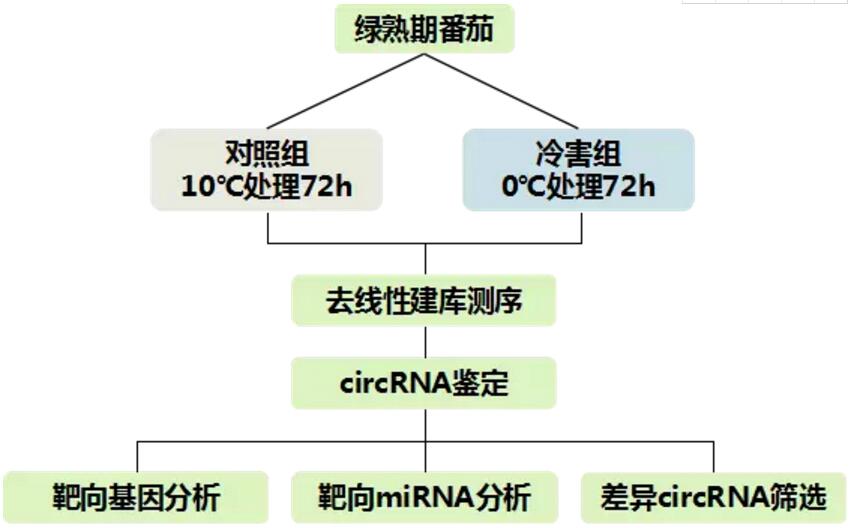 circRNA(環(huán)狀RNA)能夠調(diào)控miRNA功能和基因轉(zhuǎn)錄,近期通過高通量測(cè)序技術(shù)在動(dòng)植物當(dāng)中發(fā)現(xiàn)了大量的circRNA。然而,番茄果實(shí)中的circRNA研究地還很少。番茄是一種常見的茄科蔬菜,對(duì)冷害特別敏感。為了深入理解circRNA在冷害刺激下的作用,這篇文章用高通量測(cè)序技術(shù)研究了番茄果實(shí)中的cricRNA。