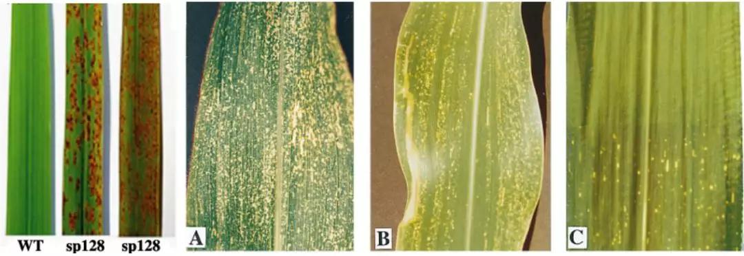 植物類病變(lesion mimic, LM)又稱類病斑,是指在沒有受到任何病原菌侵染的條件下,植物自發(fā)產(chǎn)生壞死斑點(diǎn)。這種局部細(xì)胞的壞死屬于細(xì)胞程序化死亡(PCD),細(xì)胞程序化死亡在植物生長發(fā)育過程中廣泛存在,特別是受到生物或非生物脅迫,當(dāng)受到不相容的病原菌感染時,植物可以在受感染的部位啟動某種形式的PCD,以限制病原體的傳播,這是一種先天性的免疫反應(yīng),稱為超敏反應(yīng)(HR)。HR是植物細(xì)胞為限制病原菌生長而快速死亡的一種方式,其誘導(dǎo)的細(xì)胞死亡可以激發(fā)鄰近組織的防衛(wèi)反應(yīng)(defense response)和植株的系統(tǒng)獲得性抗性(systemic acquired resistance,SAR)。