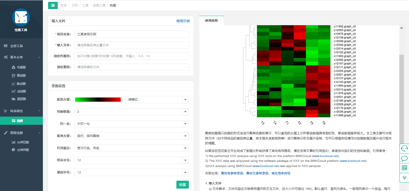是由北京百邁客生物科技有限公司開(kāi)發(fā),集生物信息分析軟件、數(shù)據(jù)庫(kù)以及云計(jì)算為一體的生物大數(shù)據(jù)分析平臺(tái)。功能強(qiáng)大,操作簡(jiǎn)單的聚類(lèi)熱圖就介紹到這里了,后期云平臺(tái)會(huì)為大家準(zhǔn)備更多實(shí)用小工具的操作指引,如果您在操作過(guò)程中遇到任何問(wèn)題都可以聯(lián)系咱們的云客服,歡迎點(diǎn)擊屏幕右下方客服圖像進(jìn)入咨詢環(huán)節(jié)。