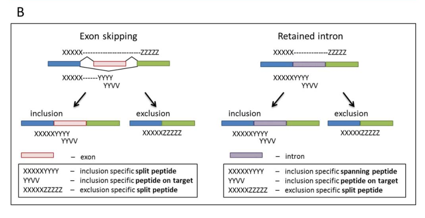 splicify作為一種基于整合RNA大規(guī)模并行測序數(shù)據(jù)和串聯(lián)質(zhì)譜蛋白質(zhì)組學(xué)數(shù)據(jù)的分析方法其新穎性在于兩組分子間選擇性剪接的差異分析,可應(yīng)用范圍很廣泛,如基因敲低與對照樣品或癌癥與健康樣品間的比較。