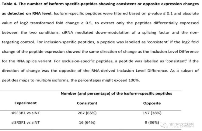 Splicify的意義在于識別RNA水平和蛋白質(zhì)水平上的isoform。通過對RNA和蛋白水平的對比分析證明該方法能夠成功地識別特定條件下蛋白質(zhì)水平上的異常剪接事件。
