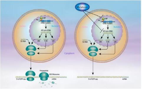 圖3 侵襲性乳腺癌細(xì)胞中褪黑激素對(duì)核糖體生物合成的抑制作用