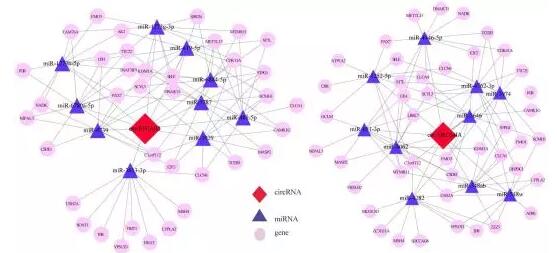 圖4. circ-EFCAB2、circ-DROSHA調(diào)控網(wǎng)絡(luò)