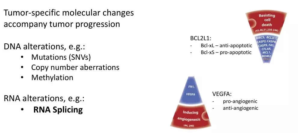另外一個結腸癌標志物相關的研究中,Malgorzata A Komor等[8]通過整合RNA-seq、Iso-seq及LC-MS/MS數據建立了一個適于臨床研究的蛋白組數據分析流程,從分析結果中可以發(fā)現(xiàn)除了DNA水平上的變異,RNA水平上發(fā)生的異常剪接也會導致癌癥的發(fā)生發(fā)展,比如在結直腸癌(CRC)中,SRSF1導致RAC1中exon 4的保留,產生了一種有助于癌細胞存活的Rac1b isoform;BCL2L1的可選擇性5 ‘ s端剪接事件的發(fā)生助于抵抗細胞死亡使;VEGFA的可選擇性3 ‘端剪接事件會導致癌癥中抗血管生成的isoform的轉變,并誘導血管生成。