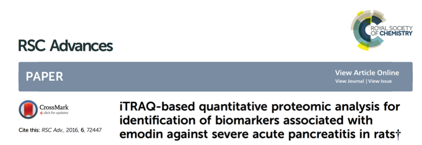 案例三:iTRAQ-based quantitative proteomic analysis for identification of biomarkers associated with emodin against severe acute pancreatitis in rats