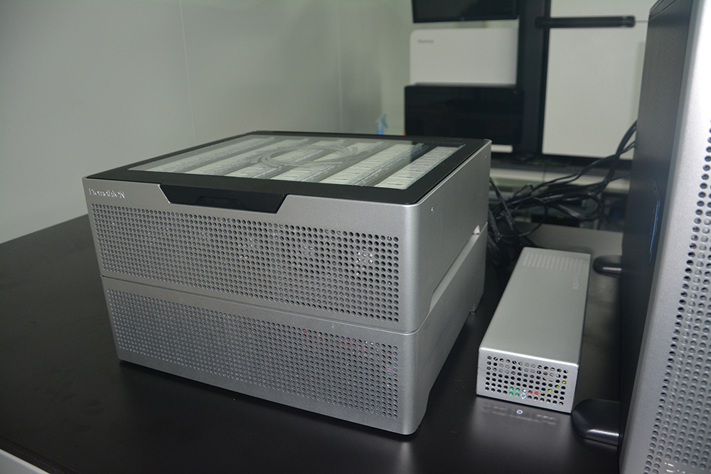????????2018年8月7日,Oxford Nanopore產(chǎn)品中的PromethION平臺(tái)已抵達(dá)北京百邁客測(cè)序?qū)嶒?yàn)室。截止目前,百邁客已經(jīng)擁有Oxford Nanopore的MinION、GridION X5和PromethION全套Nanopore測(cè)序儀,投資金額超過3000萬人民幣。PromethION作為Oxford Nanopore產(chǎn)品中的平臺(tái),在設(shè)計(jì)不僅具備了實(shí)時(shí)、長(zhǎng)讀長(zhǎng)、直接測(cè)序等特點(diǎn),在產(chǎn)量上還可能與市場(chǎng)上傳統(tǒng)測(cè)序儀相匹敵。在2018年初,Oxford Nanopore官方宣布單張PromethION測(cè)序芯片的數(shù)據(jù)產(chǎn)出超過150 Gb。而實(shí)際上,使用臨床樣本、植物樣本以及測(cè)試樣本的用戶也能夠獲得單張芯片100 Gb 的產(chǎn)出。作為Oxford Nanopore的重要合作伙伴,百邁客將基于PromethION/GridION平臺(tái)為客戶提供商業(yè)測(cè)序服務(wù)。