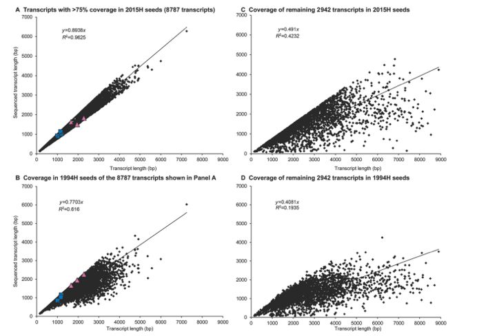 全長轉(zhuǎn)錄組:采用1994年和2015年收獲的種子胚胎軸(分別為1994H和2015H),分別5個(gè)生物學(xué)重復(fù);