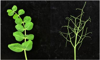 葉片形狀是一種由多基因控制的數(shù)量性狀。目前,已有幾個(gè)與葉形性狀相關(guān)基因被鑒定,而且發(fā)現(xiàn)這些基因之間存在復(fù)雜的調(diào)控關(guān)系。此外,研究人員還發(fā)現(xiàn),內(nèi)源生長(zhǎng)素和赤霉素參與豌豆葉片形狀的形成過程。但是,對(duì)豌豆葉形基因調(diào)控網(wǎng)絡(luò)的研究尚不深入,這阻礙了豌豆育種分子標(biāo)記的開發(fā)。