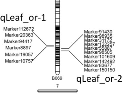 在本研究中,利用葉形存在明顯差異的兩個(gè)材料PS002和?PS047雜交得到的F2群體,利用145個(gè)單株構(gòu)建SLAF-遺傳圖譜,7146個(gè)上圖標(biāo)簽,總圖距1120.81cM,平均圖譜為0.16cM。結(jié)合F2代表型數(shù)據(jù)利用此圖譜共挖掘到兩個(gè)葉形QTL(qLeaf_or-1, qLeaf_or-2),并同時(shí)在F2群體中選擇了2個(gè)極端混池,每個(gè)池含有30個(gè)子代,運(yùn)用SLAF-BSA的方法驗(yàn)證到這兩個(gè)位點(diǎn)與葉形性狀緊密關(guān)聯(lián),并檢測(cè)到許多其他與葉形性狀關(guān)聯(lián)的分子標(biāo)記。此外,利用這些SLAF標(biāo)簽序列與蒺藜苜蓿、鷹嘴豆、大豆基因組進(jìn)行近緣物種共線性分析,發(fā)現(xiàn)無參物種豌豆與蒺藜苜蓿更為相近。SLAF-遺傳圖譜和SLAF-BSA聯(lián)合分析有利于排除標(biāo)記假陽性,該方法獲得的基因組信息龐大,對(duì)于復(fù)雜的無參物種遺傳位點(diǎn)挖掘具有較好的效果。