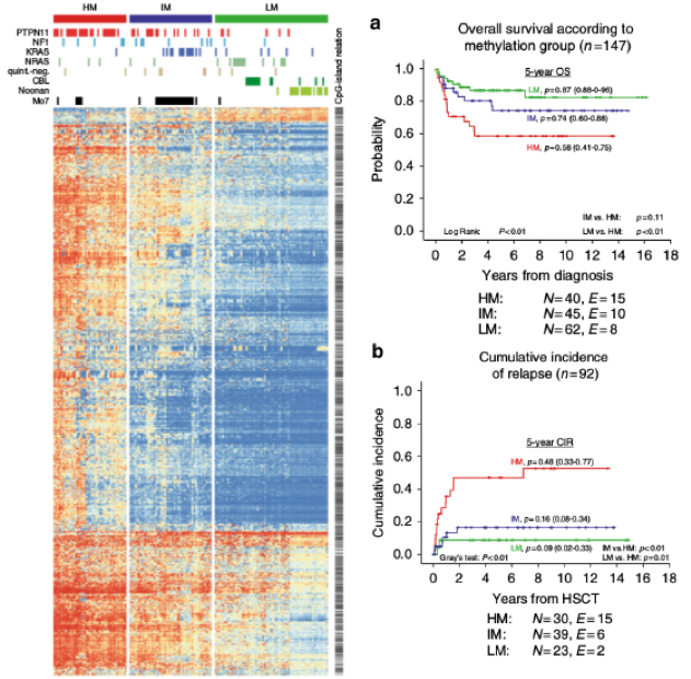 RAS-pathway mutation patterns define epigenetic subclasses in juvenile myelomonocytic leukemia.(2017 Nature Communication)