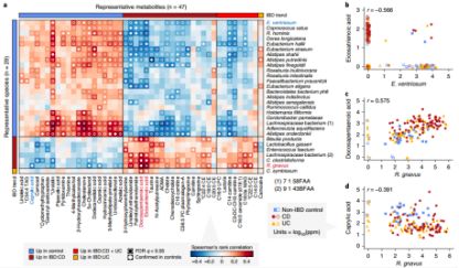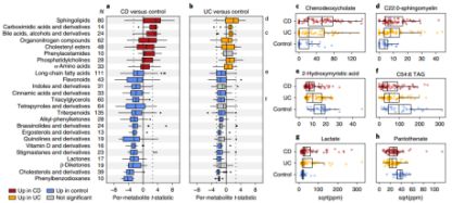 (圖1.b-e:IBD與個體腸道微生物和代謝物的關(guān)聯(lián)性)
