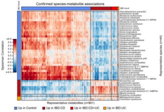 炎癥性腸?。↖BD)是一種由腸道微生物與腸道免疫系統(tǒng)相互作用異常而引發(fā)的慢性胃腸道炎癥。IBD包括潰瘍性結(jié)腸炎(UC)和克羅恩?。–D)兩種主要亞型,它們分別分布于大腸和小腸,且擁有各自獨特的微生物特征。研究表明,IBD患者的腸道微生物發(fā)生了巨大變化,與此同時,腸道微生物的代謝產(chǎn)物也能通過信號、免疫以及抗生素活性的途徑改變結(jié)腸環(huán)境。然而,腸道特異微生物與它們的分子產(chǎn)物如何通過相互作用來觸發(fā)、維持、減緩或預測IBD等炎癥狀況,我們目前仍不清楚。