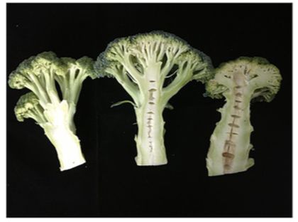 西蘭花是一種重要的蔬菜作物,其花頭富含維生素、礦物質(zhì)和葡聚糖苷等次生代謝產(chǎn)物,營養(yǎng)價(jià)值高。但是在西蘭花的商業(yè)生產(chǎn)中經(jīng)常出現(xiàn)空心莖現(xiàn)象——靠近空腔的髓組織會被吹散甚至變黑。出現(xiàn)這種現(xiàn)象的花頭不受消費(fèi)者所喜愛,從而給生產(chǎn)者帶來了嚴(yán)重的經(jīng)濟(jì)損失。針對這種現(xiàn)象,作者利用西蘭花DH群體構(gòu)建了高質(zhì)量的遺傳圖譜,并在遺傳圖譜中鑒定出控制空心莖性狀的位點(diǎn),進(jìn)而找到有利基因應(yīng)用于育種中。