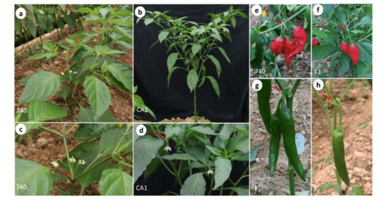 材料:inbred lines 740 (C. chinense) and CA1 (C. annuum)種間雜交,150個(gè)F2單株和150個(gè)F2:3家系