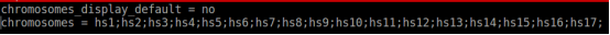 Circos軟件默認(rèn)畫出所有染色體的信息,如果我們想只展示其中的某些染色體,可以在circos.conf的添加下圖中的兩個參數(shù):