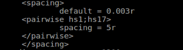如果我們只想設(shè)置某兩條染色體之間的間隔大,可以通過<pairwise>…….</pairwise>參數(shù)設(shè)置,染色體之間以分號分隔,spacing參數(shù)設(shè)置兩條染色體之間的間隔。