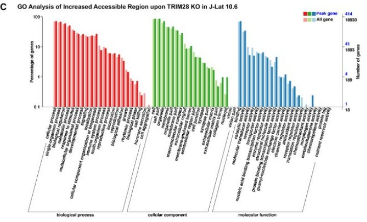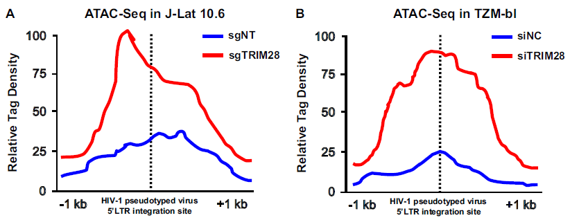 • ATAC-seq:J-Lat 10.6或TZM-bl細(xì)胞系,研究TRIM28缺失后HIV-1啟動(dòng)子的染色質(zhì)可及性
