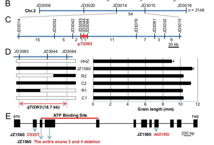 JieZheng Y, Ming M, Chen B,et al.?TGW3, a Major QTL that Negatively Modulates Grain Length and Weight in Rice [J]. Molecular Plant,2018