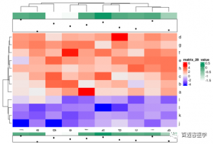column_title?=?“good?column”,column_title_side?=?“top”,column_title_gp?=?gpar(fontsize?=?20,?fontface?=?“bold”,col=”red”),column_title_rot?=?0,cluster_columns?=?T,clustering_distance_columns?=”euclidean”,clustering_method_columns?=?“complete”,column_dend_side?=”top”,column_dend_height?=?unit(10,?“mm”),show_column_dend?=TRUE,column_dend_gp?=?gpar(),row_title?=?“luck?row”)由此,我們可以很方便地更改圖上的熱圖主體和熱圖組件的屬性。