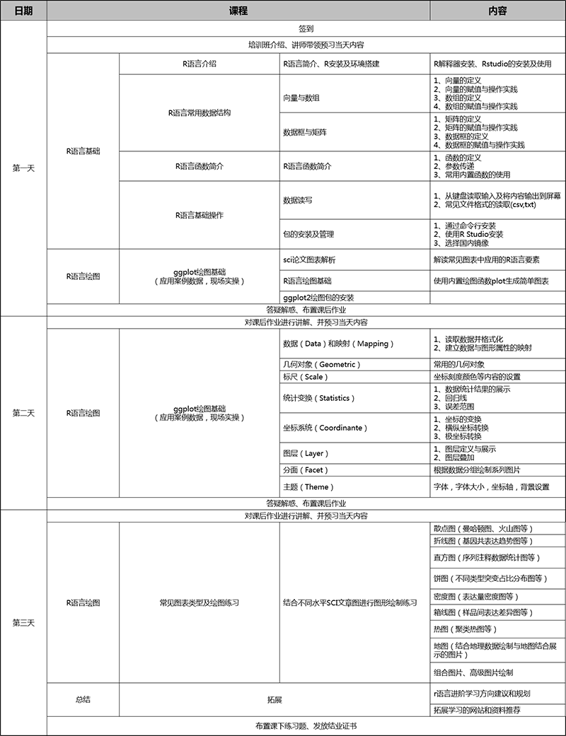 培訓(xùn)預(yù)期:通過(guò)3天培訓(xùn),可以學(xué)會(huì)R語(yǔ)言基礎(chǔ),可以繪制和修改sci常用圖形。