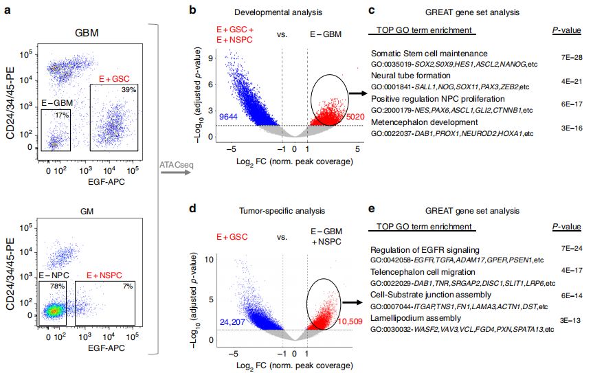 通過熒光激活細胞分選術(FACS)從GM和GBM組織中分離的細胞GSC(EGF+/-)、NSPC(EGF+/-),分別進行ATAC-seq。