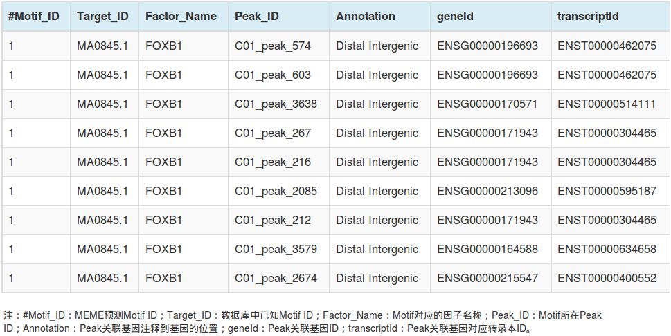 3、MEME注釋結(jié)果與Peak靶基因的聯(lián)合結(jié)果