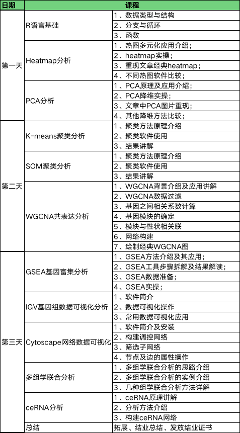 隨著測(cè)序技術(shù)的發(fā)展及測(cè)序成本的降低,轉(zhuǎn)錄組分析逐漸發(fā)展成為基一項(xiàng)礎(chǔ)的分析方法。越來(lái)越多的科研項(xiàng)目中使用轉(zhuǎn)錄組數(shù)據(jù)分析來(lái)做為分析的支持手段之一。為了協(xié)助科研工作者對(duì)轉(zhuǎn)錄組測(cè)序數(shù)據(jù)進(jìn)行深度挖掘,本次培訓(xùn)將從常用的個(gè)性化分析軟件操作入手,帶領(lǐng)大家學(xué)習(xí)轉(zhuǎn)錄組分析中常用的分析方案及實(shí)現(xiàn)方法,從而滿足文章后期發(fā)表的需求,同時(shí)也為我們生物信息科學(xué)工作者們提供一個(gè)互相交流的平臺(tái)。