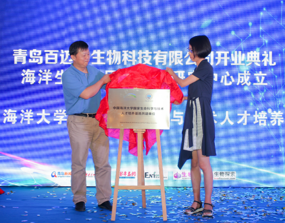 為了便于更好的服務海洋科研事業(yè)及科研人員對大數(shù)據(jù)應用的科研新需求,百邁客生物入駐青島,并建立了“海洋生物基因大數(shù)據(jù)研究中心”。北京百邁客生物科技有限公司營銷中心總監(jiān)宋軍女士、中國海洋大學食品科學與工程學院院長薛長湖老師為中心揭牌。