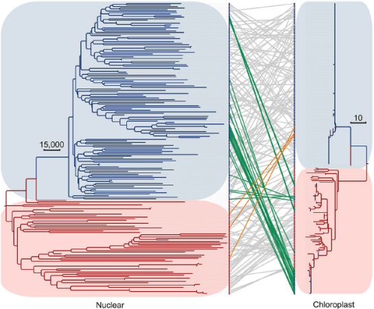 核基因組和細(xì)胞器基因組之間的不對稱多樣化揭示了基因滲入