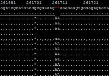 5.?通過將20?x?CCS數(shù)據(jù)分別回比到10 x PacBio CCS polish及100 x Nanopore+50 x Illumina Polish后基因組,截取基因組上特性區(qū)域,進(jìn)行組裝基因組單堿基準(zhǔn)確性的比對與評估,發(fā)現(xiàn)10?x?PacBio CCS polish后的結(jié)果提升效果明顯,我們挑選了幾個(gè)實(shí)例如下: