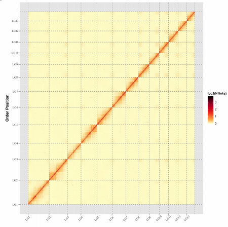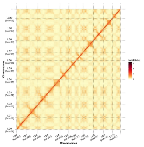 Hi-C測序深度及掛載率:77.93×;96.41%