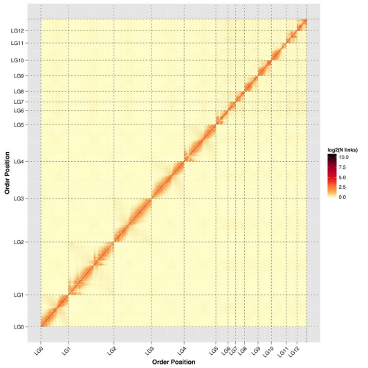 2019年9月30日,福建農(nóng)林大學(xué)基因組研究中心明瑞光教授團隊聯(lián)合多個單位共同合作的紅苞鳳梨研究成果在國際知名期刊Nature Genetics在線發(fā)表。該研究獲得了513 Mb基因組序列,并通過百邁客Hi-C實驗技術(shù)助力,最終將456 Mb基因組定位到25條染色體上(掛載率約88.8%),完成了菠蘿基因組學(xué)領(lǐng)域的再一次突破[2]。