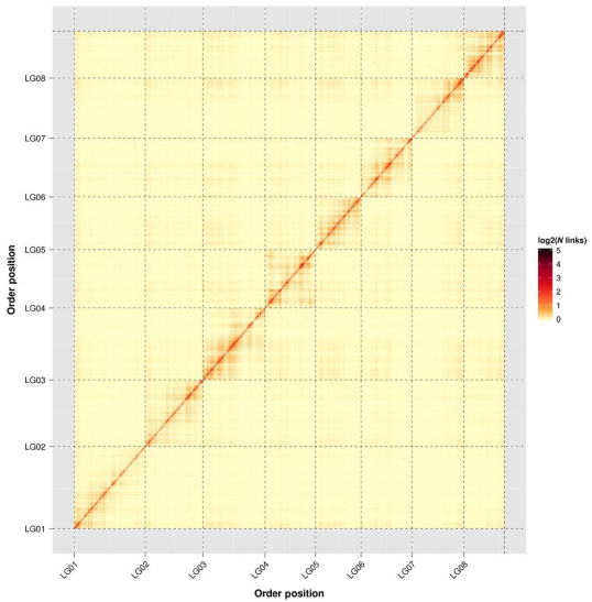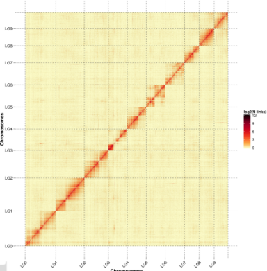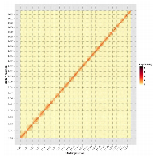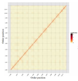 Hi-C測序深度及掛載率:~38.56×;99.25%