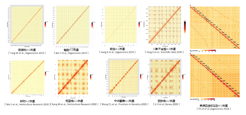 百邁客自2016年初以來,利用Hi-C技術(shù)進(jìn)行染色體水平的基因組組裝及染色體三維構(gòu)象的研究,成功開發(fā)出六堿基、四堿基酶切方案,組裝、互作輕松拿下。在植物Hi-C領(lǐng)域,更是邁進(jìn)了一大步,在同行還只能處理植物活體樣本的時候,我們已經(jīng)可以輕松“駕馭”離體枝條。迄今為止,保持著近100%的建庫成功率,完成逾300種物種,千余個文庫構(gòu)建;文庫含酶切位點的有效數(shù)據(jù)比例高達(dá)93%以上,平均比例高達(dá)68%。另外百邁客在Hi-C技術(shù)方面獲得多個專利及軟著。目前已有多篇成功案例在線發(fā)表,更多Hi-C高分文章已發(fā)表路上,后續(xù)會陸續(xù)與大家見面,敬請期待~~