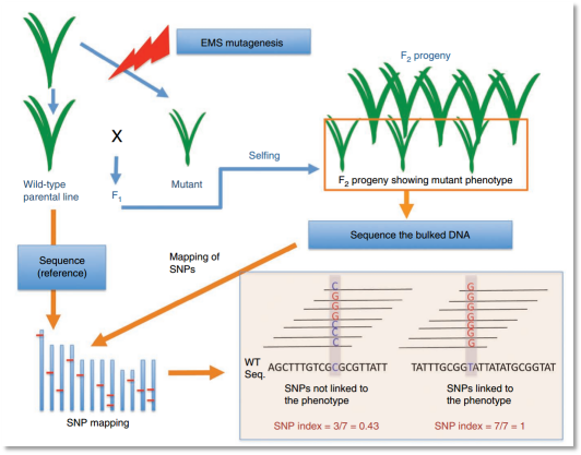 (1)該文章提出了一種針對化學(xué)誘變劑的點突變性狀的定位方法—mutmap,該方法是目前在做植物誘變性狀研究的主要方法。