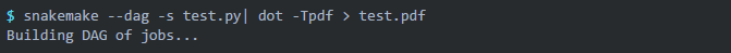 Snakemake 可以將整個工作流以流程圖的形式導出(結(jié)合 dot 命令),文件格式可以使png、pdf等。命令如下: