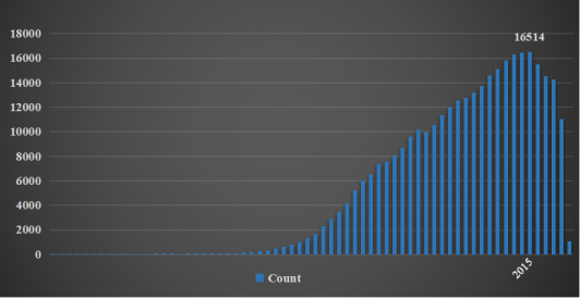 二代轉(zhuǎn)錄組測(cè)序已經(jīng)如火如荼的開(kāi)展了近十幾年,關(guān)于mRNA研究的文章也呈爆發(fā)式的發(fā)展,但是最近幾年單純的mRNA檢測(cè)似乎不再那么吃香了。我們來(lái)看一組數(shù)據(jù),下圖是Pubmed數(shù)據(jù)庫(kù)中檢索mRNA得到的相關(guān)的文獻(xiàn)信息,數(shù)據(jù)顯示2015年時(shí)普通mRNA文獻(xiàn)已經(jīng)達(dá)到峰值,隨后關(guān)于mRNA的文章開(kāi)始有下滑的趨勢(shì)。