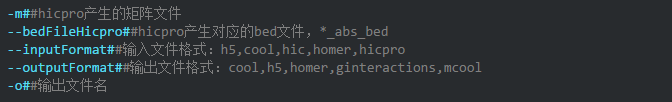 Hi-C矩陣文件: 矩陣必須用h5格式,如果我們利用HiCPro軟件得到的矩陣需要使用HiCExplorer的hicConvertFormat轉(zhuǎn)成h5格式。它可以對h5、cool、hic、homer、hicpro這些格式相互轉(zhuǎn)換。eg: