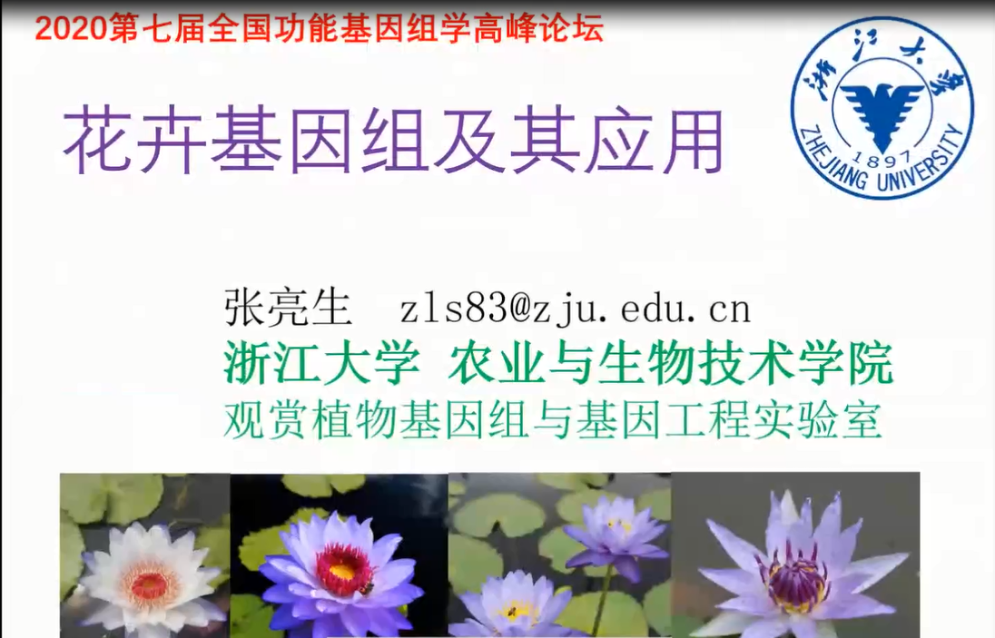 浙江大學(xué)張亮生教授對(duì)超高質(zhì)量的藍(lán)星睡蓮基因組構(gòu)建、睡蓮的花發(fā)育ABC基因鑒定、睡蓮的花香和花色合成途徑等研究結(jié)果進(jìn)行了詳述。并闡述了可作為培育藍(lán)色花瓣花卉的候選基因。除此之外還展示了滿天星、百合及其它知名花卉基因組,以及相關(guān)基因編輯研究近況與結(jié)果。張老師團(tuán)隊(duì)的研究將有望建立具有市場潛力的模式花卉品種。