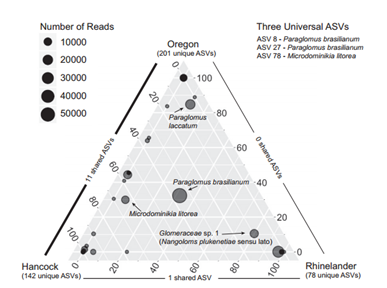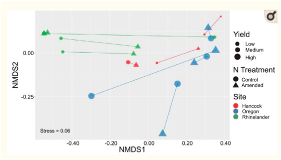通過對在威斯康星州柳枝稷的三個(gè)生產(chǎn)地點(diǎn)AMF的研究,發(fā)現(xiàn)施氮量對柳枝稷AMF的組成和多樣性沒有一致的影響。此外,本研究中闡明的ASV在理論上代表了柳枝稷土壤中存在的√確、活的基因型。在對AMF物種劃分和種內(nèi)功能多樣性缺乏分類共識(shí)的情況下,ASVs可作為一致的序列標(biāo)識(shí),為未來尋求AMF功能和生物地理學(xué)的研究以及區(qū)域適應(yīng)AMF接種的生物勘探提供參考。