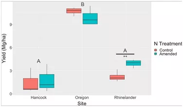 在萊茵蘭德試驗(yàn)區(qū),與對照試驗(yàn)區(qū)相比,施氮提高了柳枝稷的產(chǎn)量,但是在其他2個(gè)地區(qū)中沒有發(fā)現(xiàn)顯著差異;