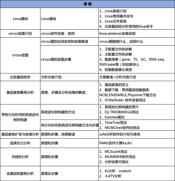 隨著測序技術的發(fā)展及測序成本的降低,越來越多的物種完成了基因組的組裝,這為多物種比較基因組學分析提供了大量的可用基因組資源。為了協助科研工作者對基因組結果進行深度挖掘,本課程將從基礎生信操作開始,從已發(fā)表的NG、NC等高水平文章入手,帶領大家學習比較基因組學常用的分析方法,從而滿足文章后期發(fā)表的需求,同時也為我們生物信息科學工作者們提供一個互相交流的平臺。