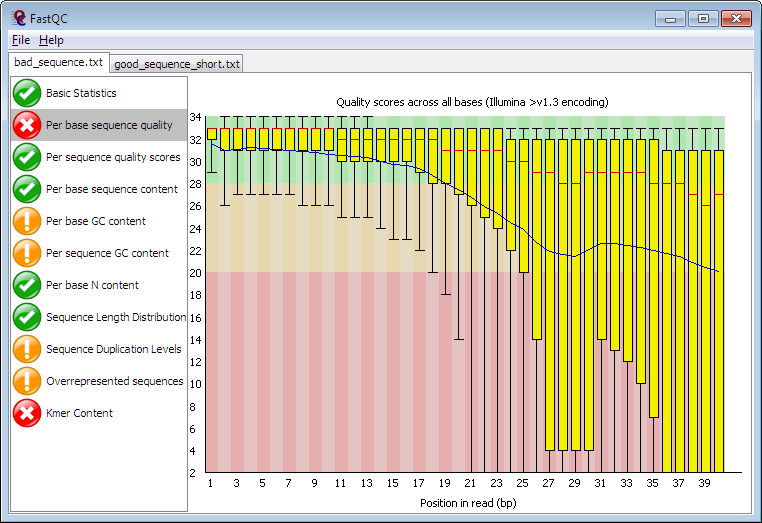 測(cè)序數(shù)據(jù)的質(zhì)量直接決定了數(shù)據(jù)分析的質(zhì)量及可靠性。低質(zhì)量的測(cè)序數(shù)據(jù)往往導(dǎo)致分析結(jié)果出現(xiàn)異?;蛘叻治鼋Y(jié)果中包含過(guò)多的假陽(yáng)性假陰性結(jié)果。利用FastQC可以快速實(shí)現(xiàn)對(duì)大量測(cè)序數(shù)據(jù)的質(zhì)量評(píng)估并生成分析結(jié)果報(bào)告。分析的指標(biāo)完善,同時(shí)可以生成可視化的圖形報(bào)告,數(shù)據(jù)質(zhì)量結(jié)果一目了然。