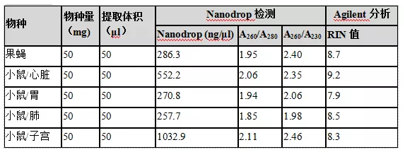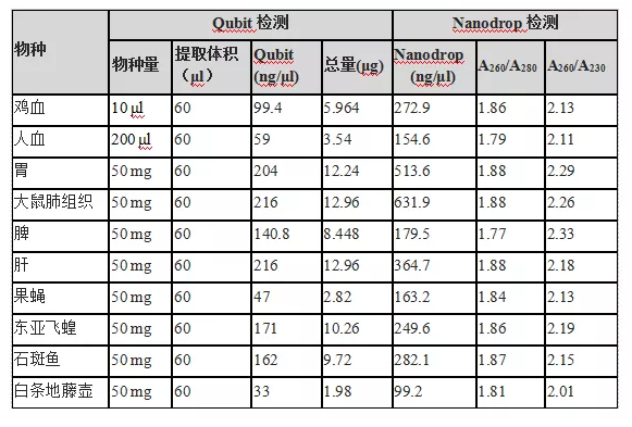 1.DNA濃度/純度檢測(cè):提取不同動(dòng)物組織中的DNA,然后檢測(cè)DNA的濃度和吸光度。