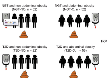 材料:四組性別匹配的成年個(gè)體的 182 名參與者,4組分別為正常非肥胖(n=52)、正常肥胖(n=52)、瘦型T2D患者(n=22)、肥胖型T2D患者(n=56)