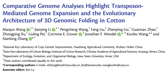 本次研究首次公布了棉屬中二倍體圓葉棉基因組,并對(duì)亞洲棉和雷蒙德氏棉基因組進(jìn)行了升級(jí),解析了轉(zhuǎn)座子活動(dòng)驅(qū)動(dòng)的基因組大小進(jìn)化特征,從轉(zhuǎn)座子擴(kuò)增和染色質(zhì)空間結(jié)構(gòu)角度為棉花物種進(jìn)化提供新的見(jiàn)解,為植物中轉(zhuǎn)座子活動(dòng)介導(dǎo)的轉(zhuǎn)錄調(diào)控進(jìn)化研究提供參考。